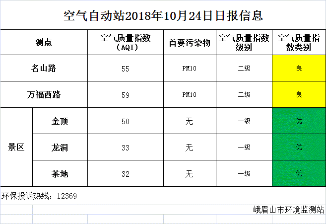 【市环保局】空气自动站2018年10月24日日报信息