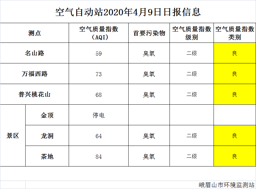 【峨眉山生态环境局】空气自动站2020年4月9日日报