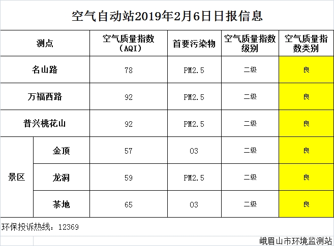 【市环保局】空气自动站2019年2月6日日报信息
