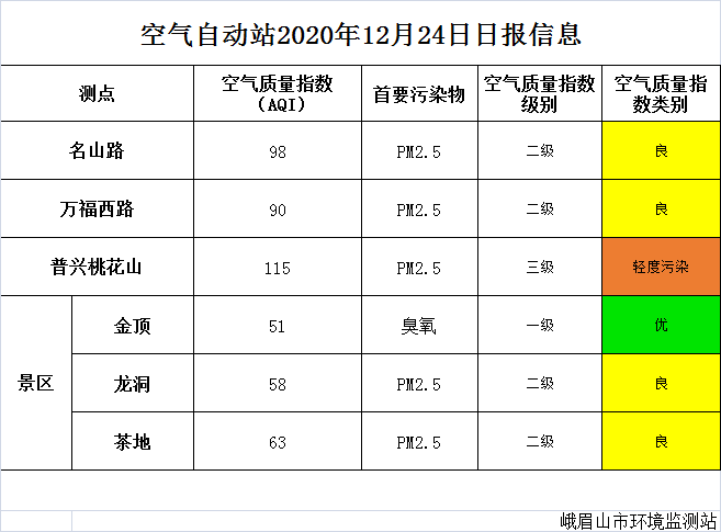 【峨眉山生态环境局】峨眉山市空气质量日报模式(12.24)