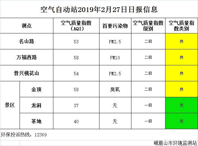 【市环保局】空气自动站2019年2月27日日报信息