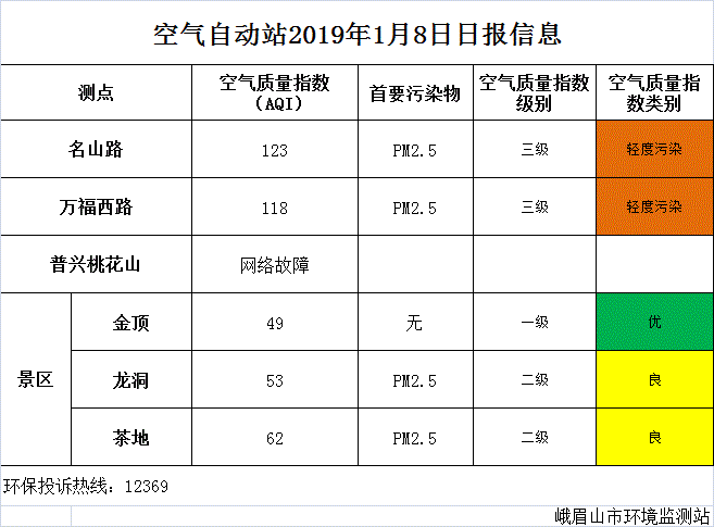 【市环保局】空气自动站2019年1月8日日报信息