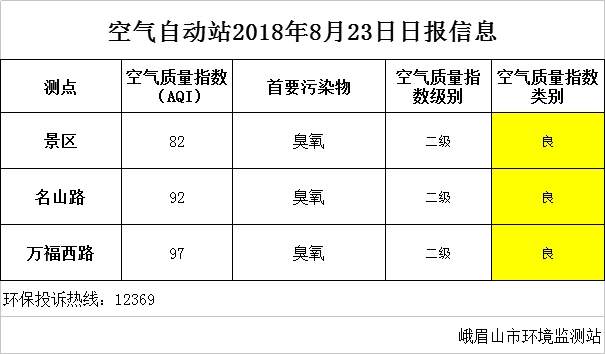 【市环保局】空气自动站2018年8月23日日报信息