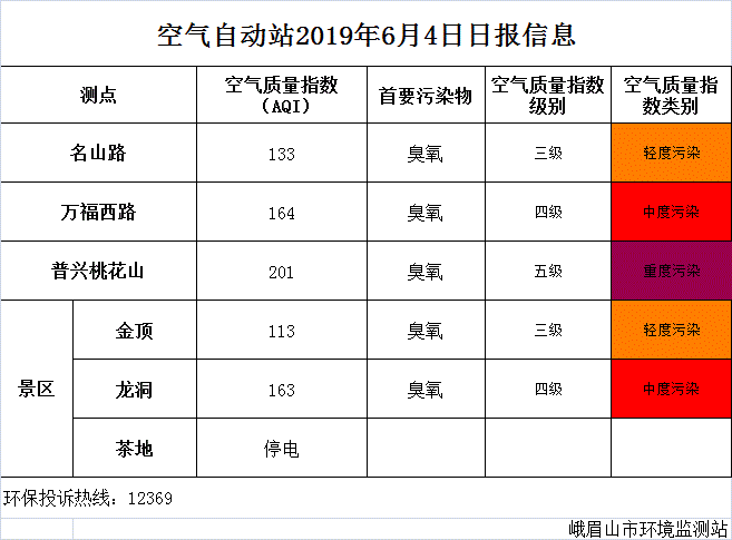 【生态环境局】空气自动站2019年6月4日日报信息