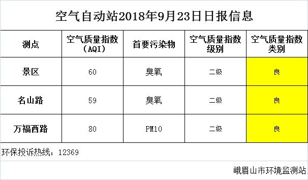 【市环保局】空气自动站2018年9月23日日报信息