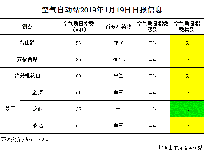 【市环保局】空气自动站2019年1月19日日报信息
