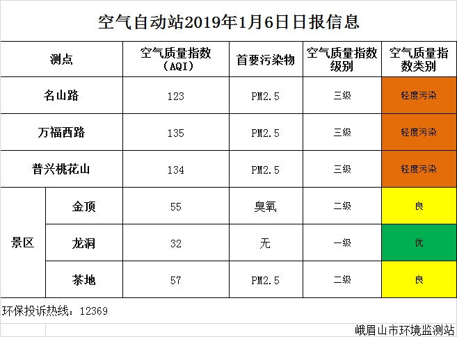 【市环保局】空气自动站2019年1月6日日报信息