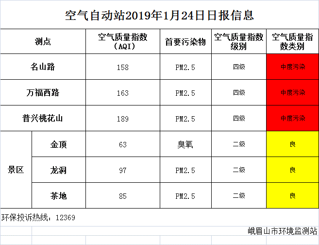 【市环保局】空气自动站2019年1月24日日报信息