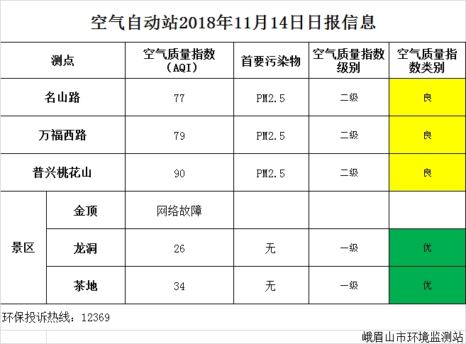 【市环保局】空气自动站2018年11月14日日报信息