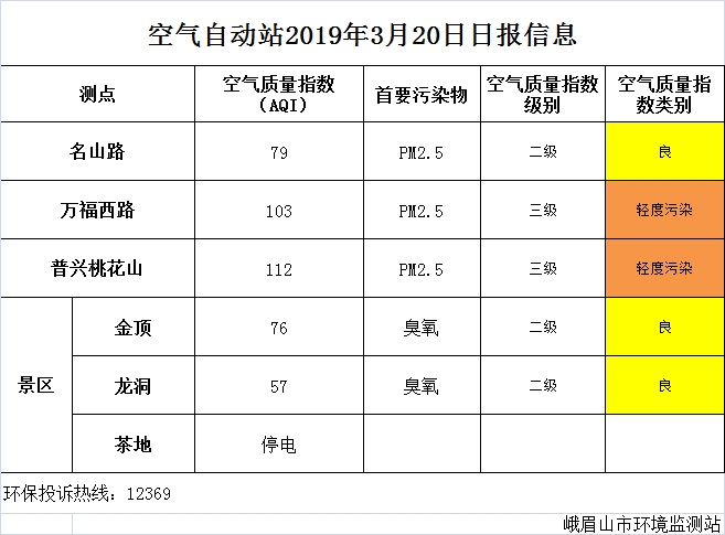 【市环保局】空气自动站2019年3月20日日报信息