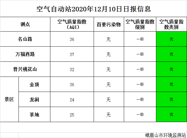 【峨眉山生态环境局】空气自动站2020年12月10日日报