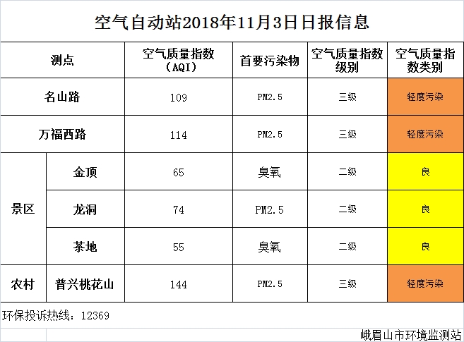 【市环保局】空气自动站2018年11月3日日报信息