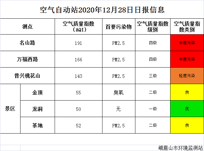 【峨眉山生态环境局】峨眉山市空气质量日报模式(12.25-12.28)