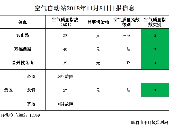 【市环保局】空气自动站2018年11月8日日报信息