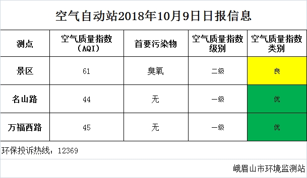 【市环保局】空气自动站2018年10月9日日报信息
