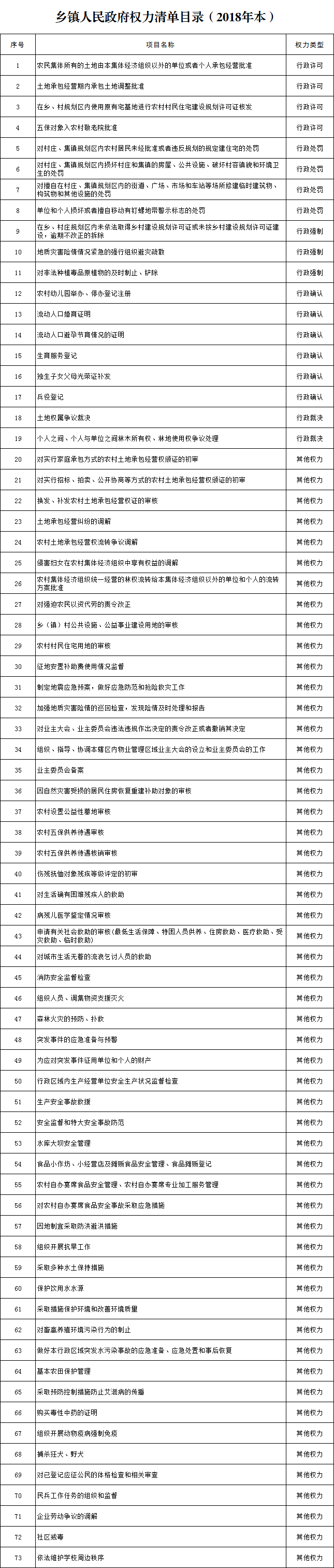 双福镇人民政府权力清单目录(2018年本)