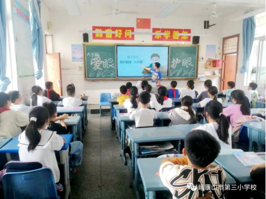 习近平总书记指出:我国学生近视呈现高发、低龄化趋势,严重影响孩子们的身心健康,这是一个关系国家和民族未来的大问题,必须高度重视,不能任其发展。为贯彻落实习近平总书记关于青少年近视防控系列重要指示批示精神,进一步宣传爱眼护眼卫生知识,增强学生的爱眼护眼意识,养成良好的用眼习惯,9月21日,峨眉三小各班开展了“爱眼护眼 守护健康”班队主题活动。