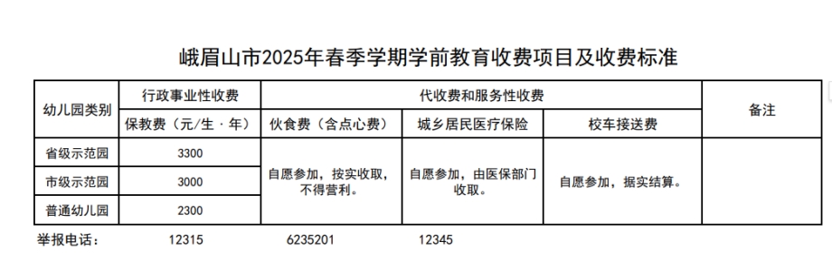 附件:峨眉山市2025年春季学期学前教育收费项目及收费标准