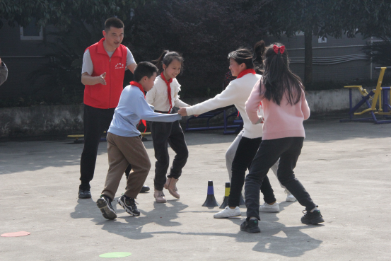 强健体魄师生同行。志愿者与孩子们进行“韵律操、趣味跑、游戏”等快乐体育,引导孩子不断强化主体意识和参与意识、积极投身于体育运动,共同营造争做阳光少年、强国少年的良好氛围。