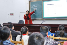 龙池镇小潘在奎老师作了《基于核心素养的数学单元整体教学——以“小数的意义和性质”为例》的专题讲座,从单元教材分析、把握内容结构,整合单元目标、优化教学结构,精设学习活动、发展核心素养等三个方面对单元整体教学设计进行了探索。