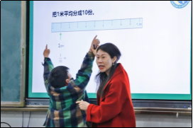 峨眉二小李建平老师以“小数的意义”为内容作了教学展示,龙池镇小杜联伟老师以“立足单元整体,突出数概念的本质“为题对这节课例作了解析。李老师的课堂,立足单元整体,联系学生生活实际,借助长度单位,以问题导引学生通过多元体验活动,体会小数的产生,认识小数的计数单位,理解小数的意义,感悟数概念本质上的一致性,发展了学生的数感、符号意识、推理意识。