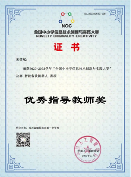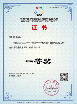 日前,峨眉一中从中国人工智能学会获悉该校郑伦强、刘湘两位同学参加2022-2023学年全国中小学信息技术创新与实践大赛决赛获得全国一等奖,朱儒斌老师获得“全国优秀指导教师”。