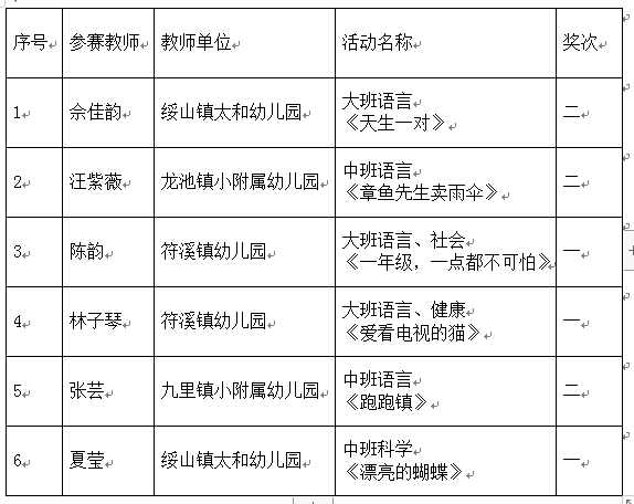 符溪镇幼儿园陈韵 符溪镇幼儿园林子琴