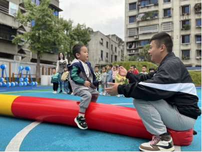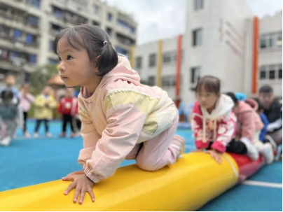 “神奇金箍棒”“翻山越岭”“无敌风火轮”“爬爬小勇士”……一张张开心的笑脸、一阵阵欢乐的笑声,就知道这些游戏一定好玩。