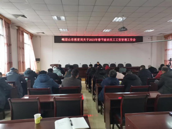 为了全面推进落实农民工工资支付保障制度,进一步规范工程建设领域用工管理和工资支付行为,保障农民工权益不受侵害,维护社会稳定。2023年1月9日,峨眉山市教育局组织召开了全系统2023年春节前农民工工资管理工作会,各相关项目学校校长、项目负责人参会。