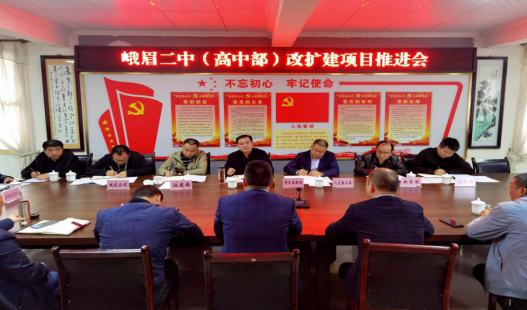 为加快工程进度,如期建成投用,2021年10月19日下午,市人大常委会党组书记、市政协主席、峨眉二中(高中部)改扩建项目指挥部指挥长樊廷举,召集市人大教工委、教育局、住建局、财政局、峨眉二中、城投公司,以及江苏省建(施工单位)、首盛集团(监理单位)项目负责人,在峨眉二中(高中部)烛光楼,召开项目建设推进会。