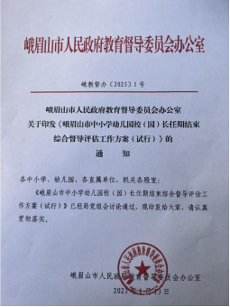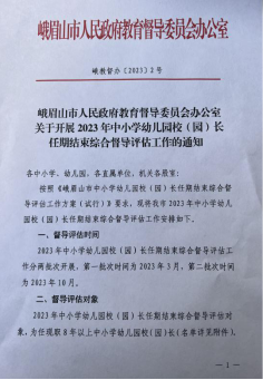 2022年11月,峨眉山市确定为中小学幼儿园校(园)长任期结束综合督导评估国家级试点县。峨眉山市教育局高度重视,科学统筹,周密部署,强力推进国家级试点县相关工作。
