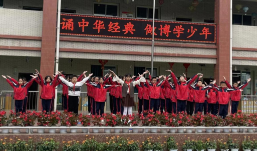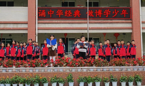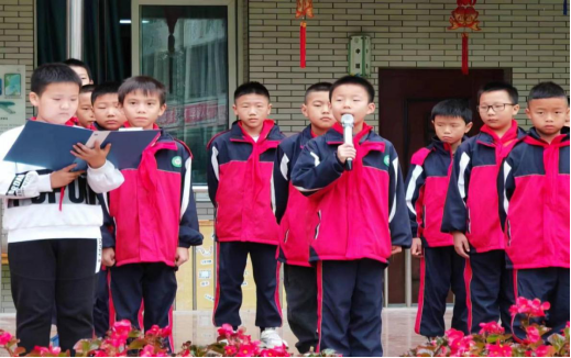 诵读经典,我们寻找万里河山的广阔。对话圣贤,我们感受千年文字的力量。孩子们在诵读经典的过程中,获取中华优秀传统文化的滋养,感受中华传统文化蕴含的价值理念。为此,10月17日集体校会上,五三中队开展了“诵中华经典,做博学少年”为主题的国旗下展示活动。