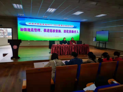 市教育局学生资助管理中心负责人秦小华对2020—2021学年全市资助工作做总结,并安排布置2021—2022学年工作。结合上一学年度资助工作中的不足,如机构机制不健全、资助环节不规范、资助档案不完善、宣传成效不明显等,要求各学校在本学年度资助工作中,一是要加强和健全学校组织领导和工作机构,制定和更新本校各项资助工作管理办法,规范各资助项目的申报及审批程序,加强资金发放管理。二是重视学生资助档案建设工作,及时归档,科学保存。三是要加强资助育人工作,加强诚信和感恩教育,培养受助学生自立自强精神。四是要努力提高学生资助工作的信息化水平,全面实现三个“100%”目标。