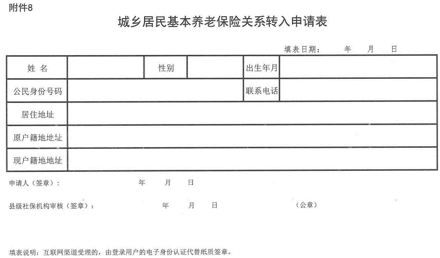8. 城乡居民基本养老保险转入申请表