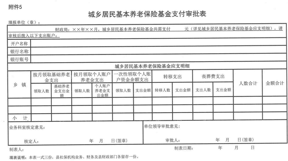 5. 城乡居民基本养老保险基金支付审批表