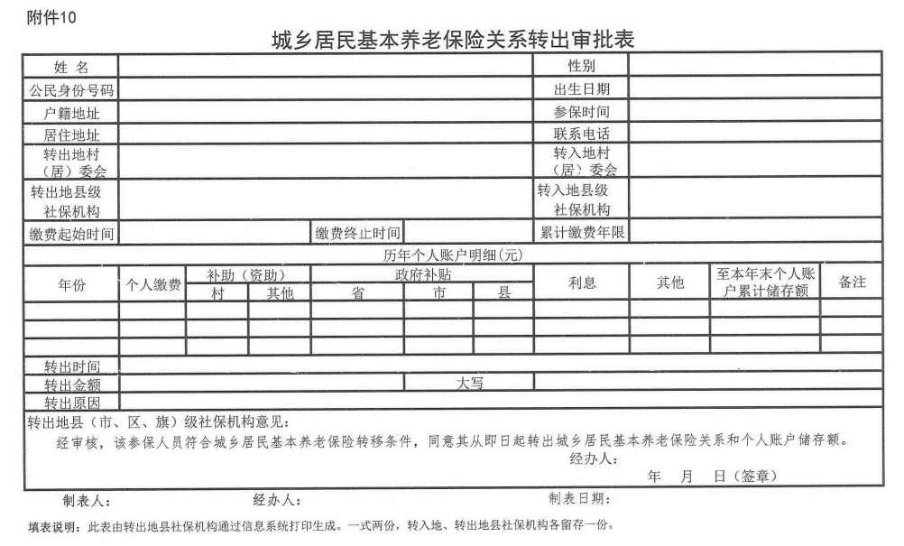 10. 城乡居民基本养老保险关系转出审批表