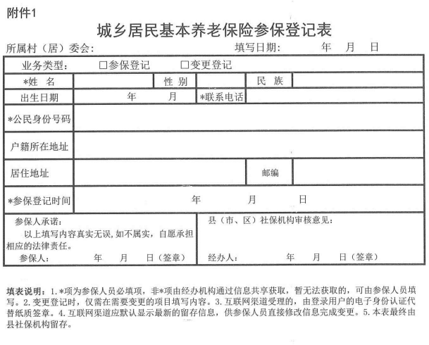 附件:1.城乡居民基本养老保险参保登记表