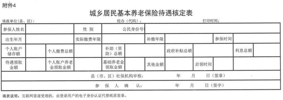 4. 城乡居民基本养老保险待遇核定表