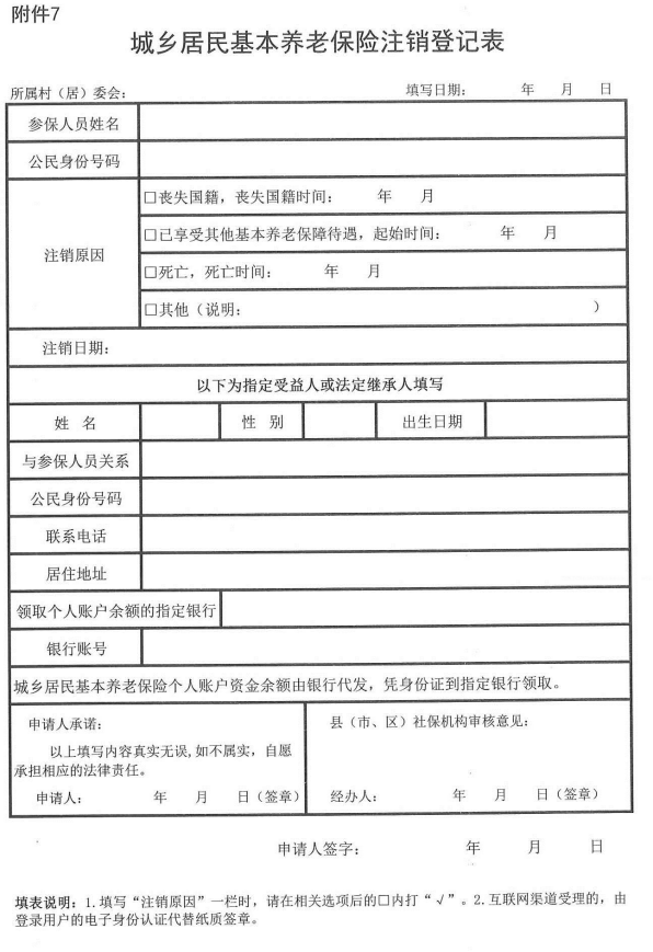 7. 城乡居民基本养老保险注销登记表