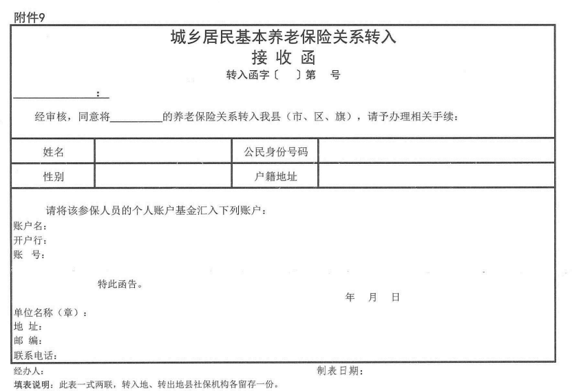 9. 城乡居民基本养老保险转入接收函