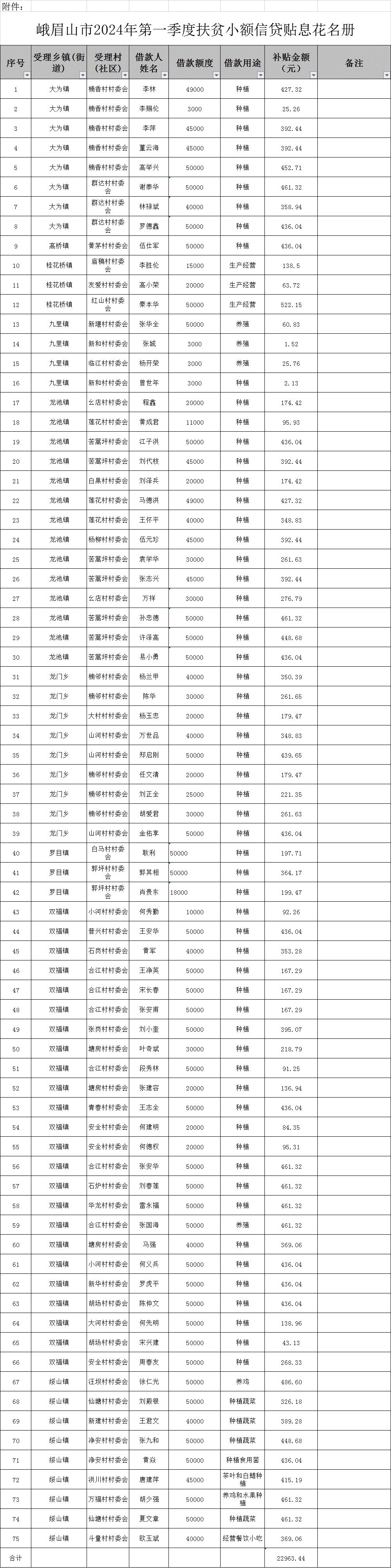 附件:峨眉山市2024年第一季度扶贫小额信贷贴息花名册