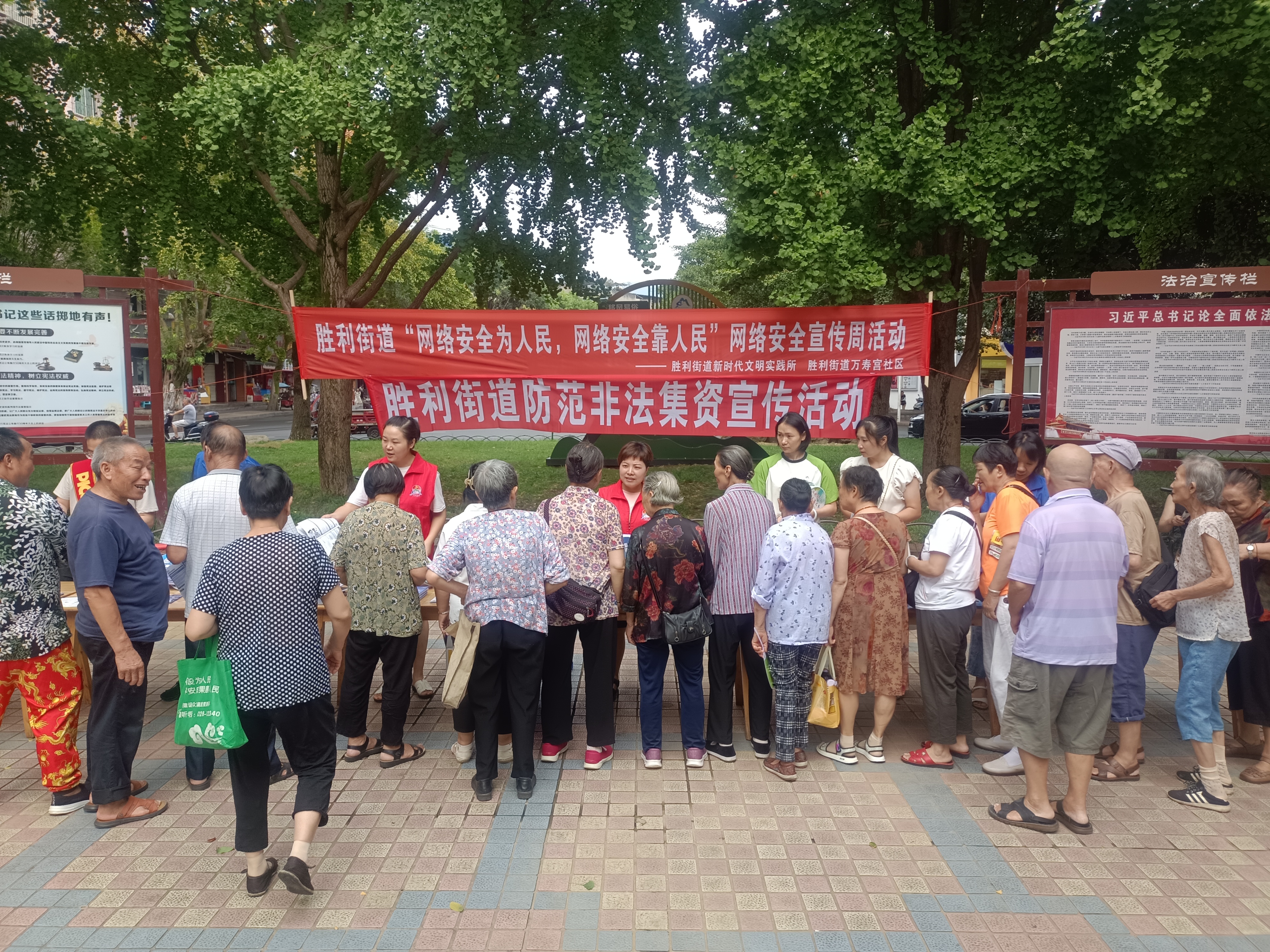 9月20日,峨眉山市胜利街道工会联合会、胜利街道新时代文明实践所联合开展了以“网络安全为人民,网络安全靠人民”为主题的国家网络安全宣传周活动,通过多种形式向居民普及网络安全知识。活动中,工作人员通过设立宣传展板、发放宣传资料、现场讲解等方式,向居民普及网络安全知识。万寿宫社区志愿者还向居民发放了精心制作的网络安全宣传折页,并结合实际案例,为居民解答了相关网络安全知识,并围绕如何预防网络诈骗等给出了建议。“我们老年人对网络不太懂,容易被骗,通过今天的活动学到了很多知识,心里踏实多了。”居民徐加满说。
