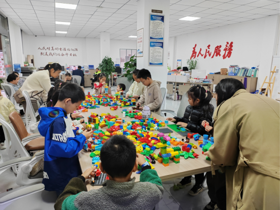 在“雪花片片”活动中,志愿者在立冬小讲堂里为孩子们讲解立冬节气的由来、气候、风俗、饮食文化以及诗词等,引导孩子们结合学到的立冬知识想象立冬后的景象,用乐高积木拼搭出麋鹿、饺子、糖葫芦、雪人......一个个作品在孩子们的手中被创造出来,五彩缤纷的乐高积木也在此时不断变换着形状,呈现出一片生动的冬日景象。