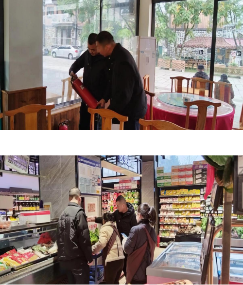 检查组深入辖区超市、饭店、民宿等场所,重点对电气线路是否乱接、消防设施是否配备、是否堆放易燃易爆物品、室内是否违规停放电动车等情况进行检查。此次安全检查坚持“全面覆盖,不留死角”的原则,共发现安全隐患8个,并逐一登记造册,同时按照“清单制+责任制+时限制”要求,定人定岗定责落实问题整改,截至目前,均已完成整改。