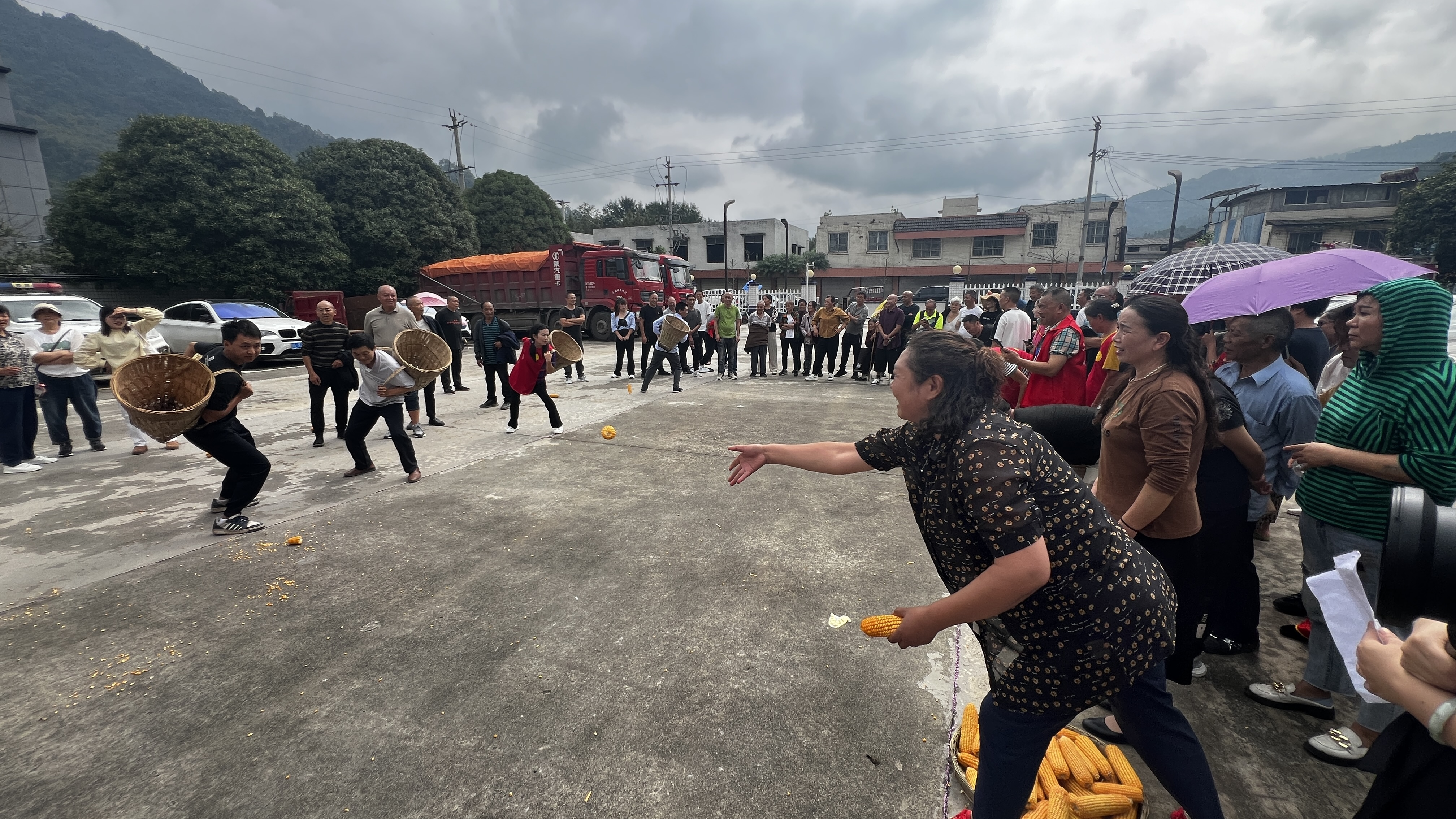 “丰收接力”项目,考验选手的配合与默契,每个小组成员相互配合,完成接玉米任务,在比赛中,拉进了村民与村民之间的互动。