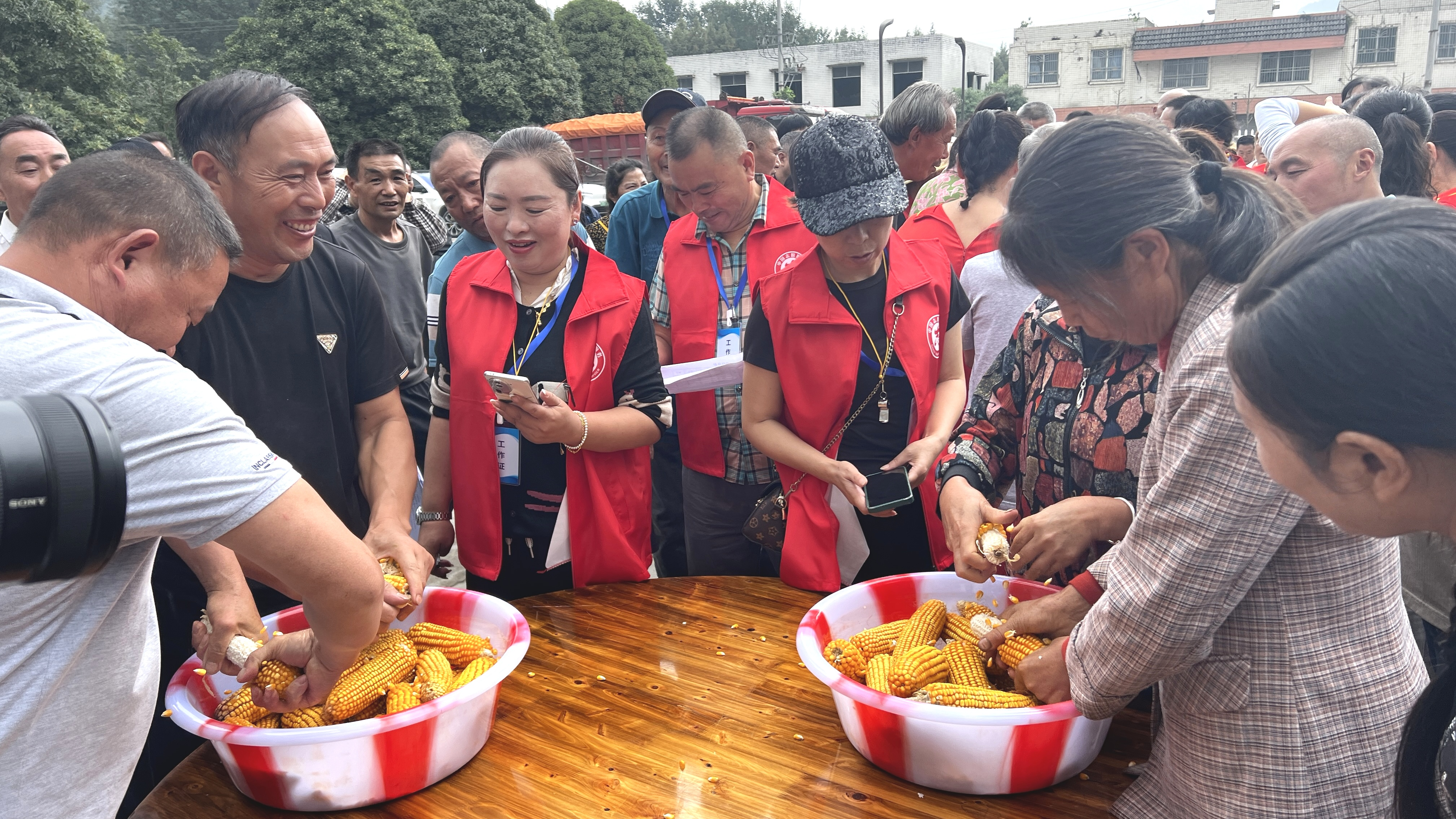 “手搓玉米”项目,考验参赛选手平时的干活技巧,只见每一名参赛选手动作娴熟,玉米粒与玉米梗快速分家,不一会20根玉米棒就成为一盆玉米粒了。