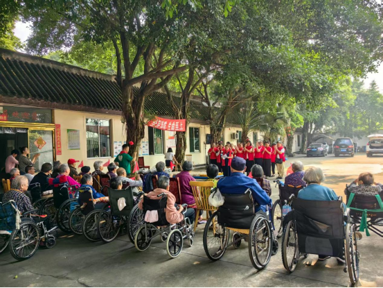 随后,志愿者们精心准备的文艺表演正式开始。有的翩翩起舞,用优美的舞姿为老人们带来视觉上的享受;还有的放声高歌,唱出对老人们的祝福和敬意。老人们被志愿者们的热情所感染,纷纷跟着节奏拍手、哼唱,整个养老院充满了欢声笑语。