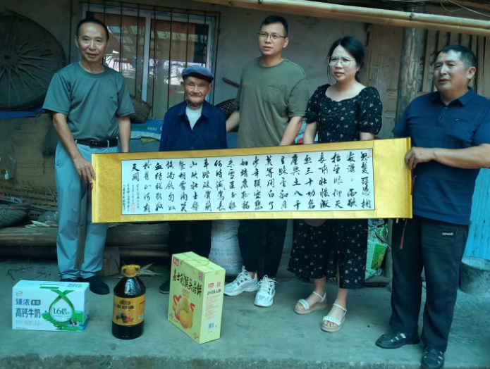 7月28日,大为镇结合情䁔峨眉专项行动,依托镇、村新时代文明实践所(站),组织镇、村退役军人志愿者、老年志愿者及青年志愿者,开展“八一”走访慰问困难老兵活动。