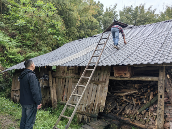 在4月17日雨后,帮扶干部及施工方早早便齐聚朱大爷家,对屋顶的树脂瓦进行了全面细致的检查,并对发现的漏雨部位进行了妥善修缮。经过一系列精心处理,漏水问题得到了解决。