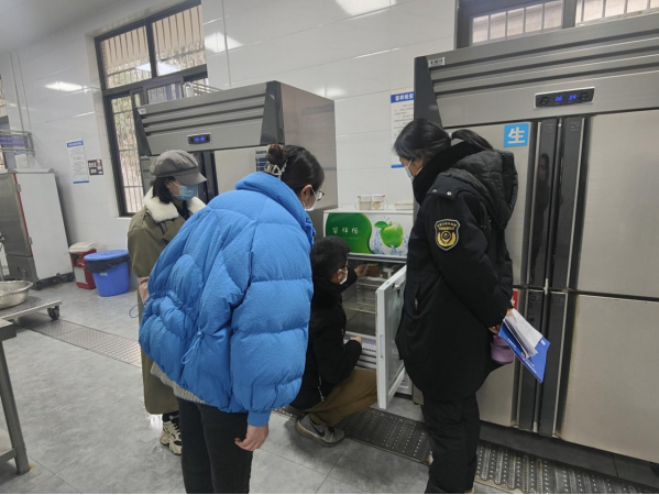 在消防安全方面,围绕用火、用电、用气等是否符合规范要求,疏散通道、安全出口是否畅通,消防器材是否完好有效,是否定期巡查等内容,对学校教室、午休室、食堂以及配电房等消防安全重点部位进行了全面检查;在食品安全监管方面,重点对学校厨房的环境卫生、除四害设施以及餐具消毒设施使用维护等情况进行了检查,并现场查看了食品留样样本、从业人员健康证、仓库食材等。